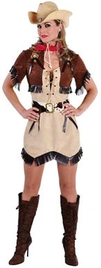 Details: Jurkje met veter sluiting op de borst en een koeien motief ceintuur. Aan de onderkant van de bolero en jurkje hanger franjes