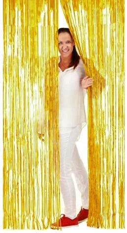 Een leuk deurgordijn folie Goud, De afmetingen zijn 2×1 Meter. Tevens verkrijgbaar in andere kleuren.
