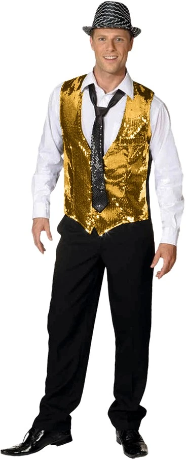 Glitter Gilet Pailletten Goud. Pailletten zijn aan 3 zijdes vastgestikt.