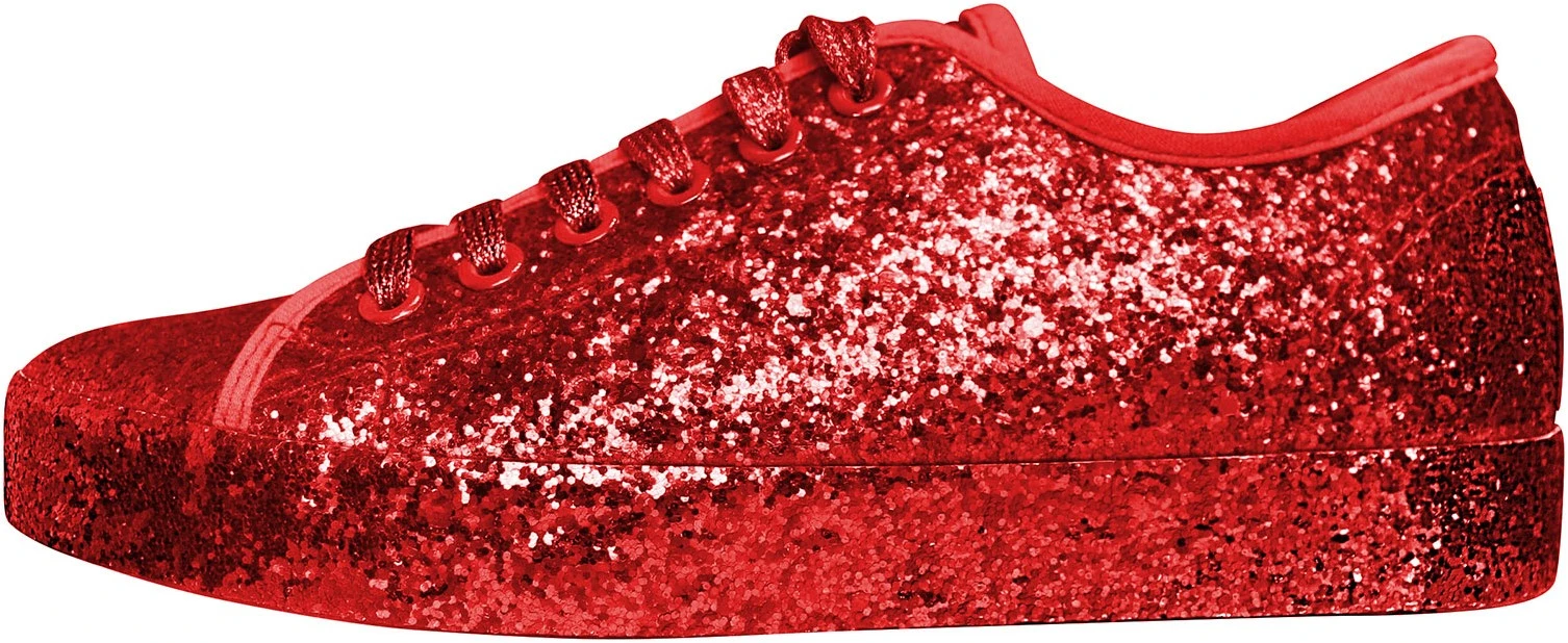 Stoere rode glitter sneakers om een kostuum helemaal mee compleet te maken. Voor een foute party of een disco feest met deze schoenen kan het allemaal!