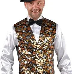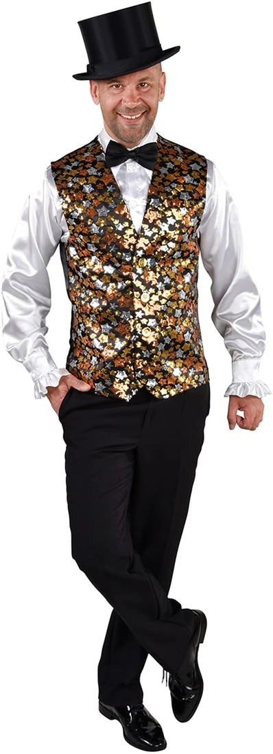 Een shiny gilet met allemaal pailletten sterren. De sterren zijn brons, zilver en goud en zorgen voor een glitter en glamour look.