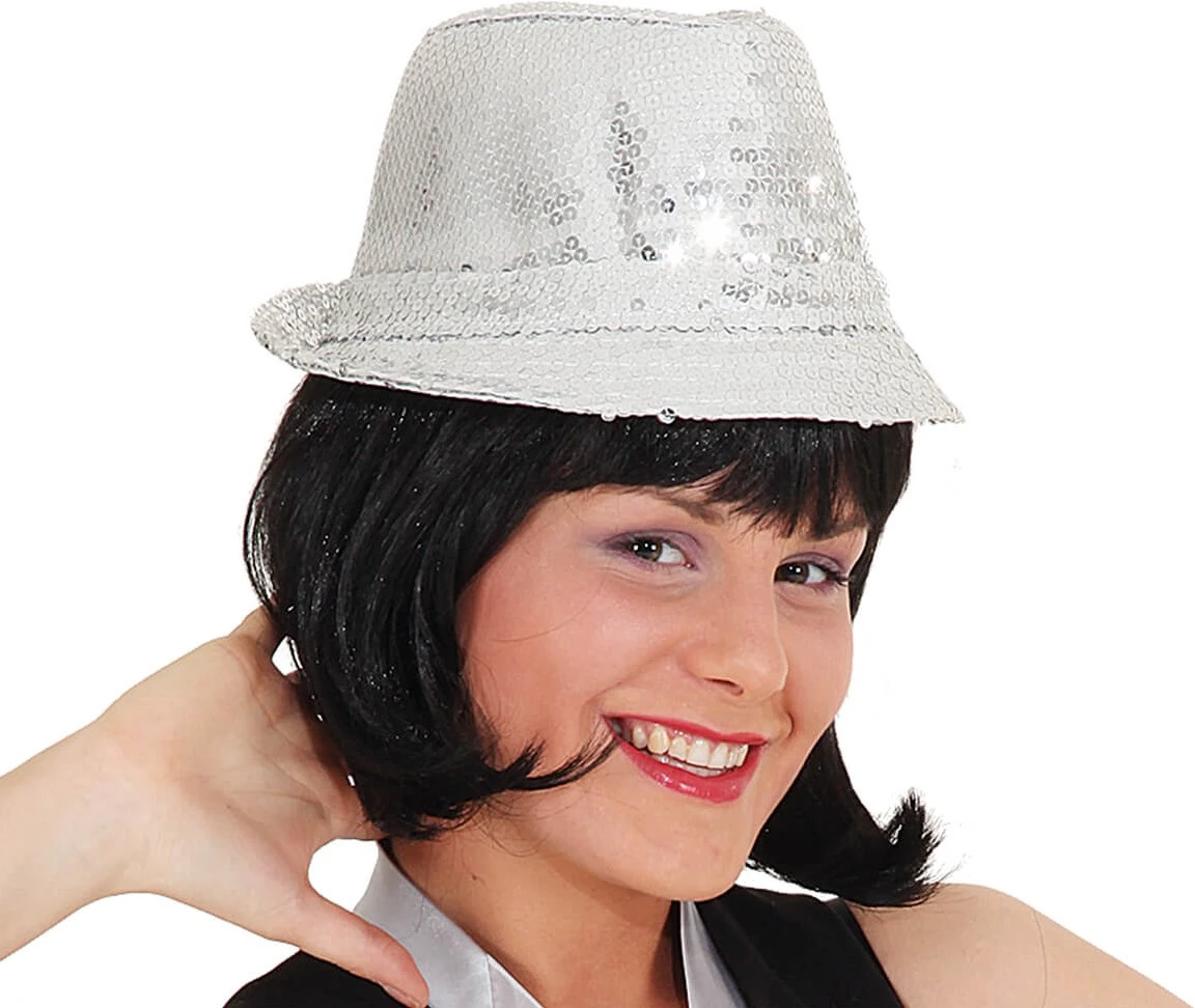 Hoed Popstar Pailletten Zilver.