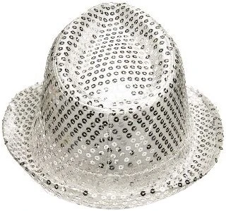 Zilver pailletten gangsterhoedje, ook verkrijgbaar in andere kleuren.