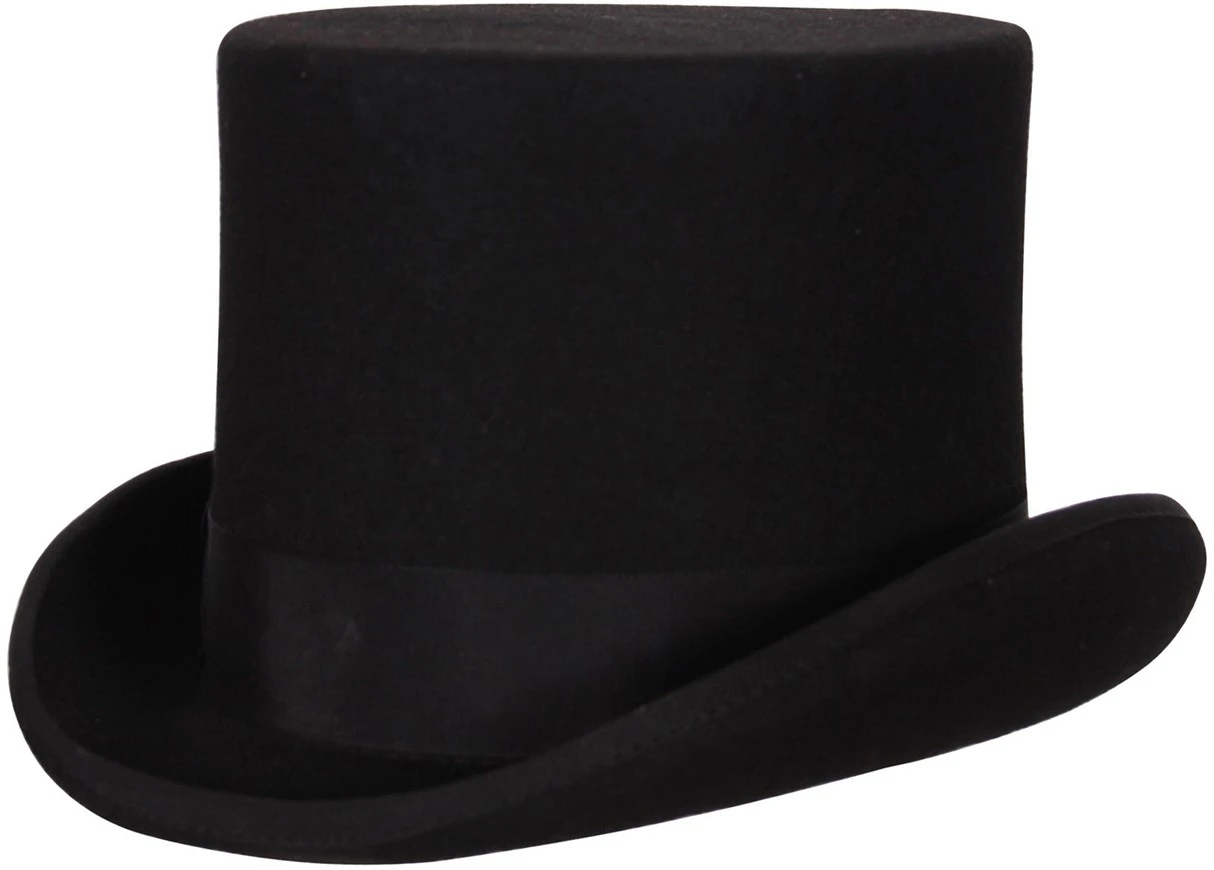 Een mooie hoge hoed om het kostuum meer klasse te geven. Want net zoals in de 18e en 19e eeuw, hoe hoger de hoed hoe welvarende je was.