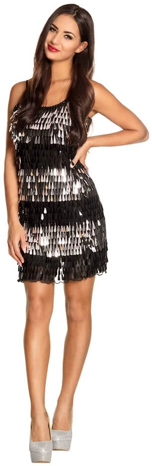 Details: de voorkant is versierd met druppel pailletten, de achterkant van de jurk is van een effen gladde stof