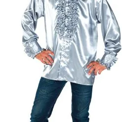 Deze zeer mooie Zilveren ruche blouse is gemaakt van hoogwaardig satijn. Tevens verkrijgbaar in verschillende kleuren..