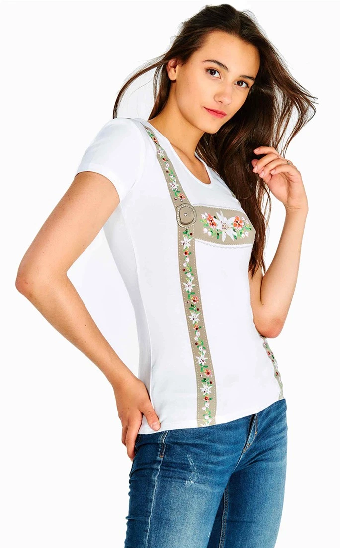 Met dit leuk Trachten T-shirt met lederhose opdruk, heb je een lekker luchtig bovenstuk met warm weer!