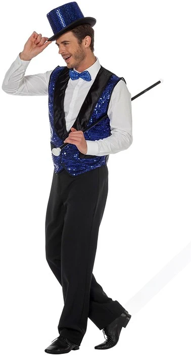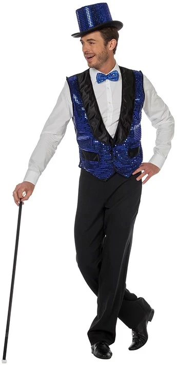 Erg leuk vest/gilet met blauwkleurige pailletten. Ook verkrijgbaar in het goud.